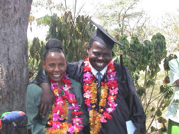 Josephales Mtebe, school director, (equivilent to headmaster or principal) embodies the spirit of The Lion of Judah Academy. Mtebe (mmm-teh-beh), as he is most often called, is a deeply committed Christian who has been a professional school teacher for many years. He is bright, talented, visionary, extremely capable, and hard-working. He, along with Lynn Inlow (see " Founders "), received the initial vision for the creation of The Lion of Judah Academy in 2000. Today, as director of the school, he is responsible for the day-to-day operation of The Lion of Judah Academy, and much of its success and effectiveness can be traced directly to him. Not only does he capably lead the educational programs of the school, but he also oversees ongoing construction work, recruits and supervises new staff, interacts with the government on behalf of the school, and carries out many other important responsibilities. In addition to his work at the school, Mtebe is an elder at Bulima Local Church and oversees the local UKWATA (a nationwide interdominational Christian youth organization). He is so skilled in English that he is widely sought after as a translator. He is serving on a major national commission studying ways to improve education in Tanzania. He graduated from Nassa Theological College in 2002, receiving an Advanced Diploma in Theology. He is married with three children, the youngest now approaching his first birthday. Mtebe and wife Pili on NTC graduation day Preaching at an evangelistic crusade |