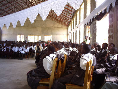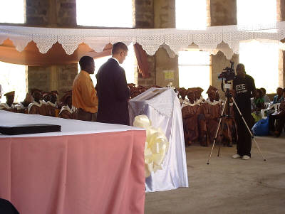 This video was prepared to celebrate the first secondary school graduation. It is titled, "Beginnings" Here is a link to the video on YouTube, due to some of the content in the video it is difficult to view the video on this page. To return here, click "Back" in your browser. Below is the same video, "Beginnings," as at left. However, due to certain restrictions, our German friends were not able to view it on YouTube. So we modified the soundtrack and published it here -- it has an African music soundtrack. Scroll down the page for more videos and photos!! The video to the left is a brief compilation of clips from Graduation Day. Did you know that you can click on the small arrows in the lower right of a YouTube video window, and it will enlarge? However, depending upon your connection speed, that may cause the video to hesitate. Hit 'ESC' and it will return to its smaller size The video at right is included primarily to 'show off' the new Lion of Judah Academy Chapel! This video was taken on Graduation Day. Earlier in the fall we didn't think it would be possible to complete the chapel by Graduation...and getting the roof erected in time seemed an engineering and financial impossibility! But God provided! Try to imagine the challenges of engineering and constructing a building like this in the Tanzania bush! God certainly has provided! The Secondary School Graduates Singing Tanzanian renditions of "Give Thanks" and "Because He Lives"...Enjoy! The Secondary School Graduates singing a special graduation song: "Today is a Special Day." In the later part of the video you will see Lynn, along with some special guests from the U.S. Most of the Tanzanians seated at the head table are either Head Teachers or members of the Board of Trustees The new Lion of Judah Academy chapel isn't completely finished, but it was nonetheless jam-packed with enthusiastic students, families, and guests, for the first secondary school graduation. The new chapel from the front Dan Tubbs, headmaster of The King's Academy in Mohrsville, Pennsylvania, gave the graduation address. The Lion of Judah Academy and The King's Academy are Sister Schools. |