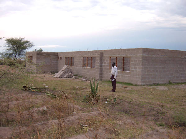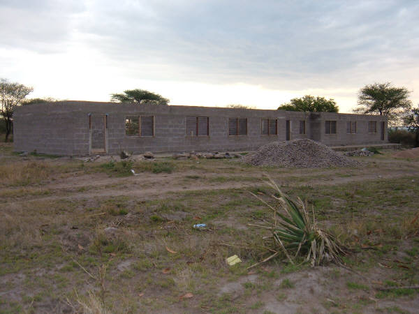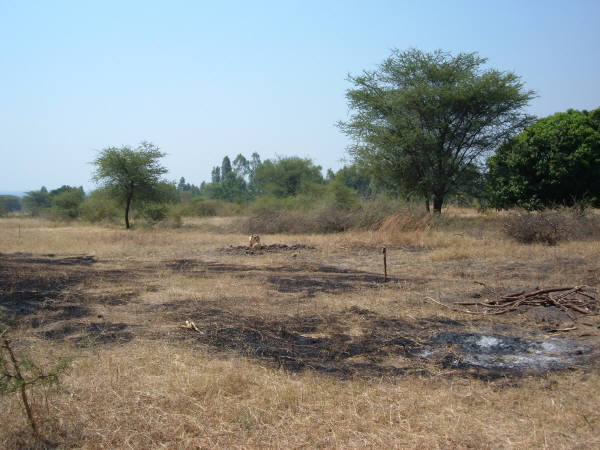 These photos were taken in July, 2007, when the first buildings of the new secondary school were being plotted and staked out, in preparation for digging the foundations. The ground has already been partially cleared. The large roundish trees are mango trees, and are highly valued because they are not only beautiful, but produce lots of wonderful -- and valuable -- mangos. Mango trees are NEVER cut down...we always build around them!