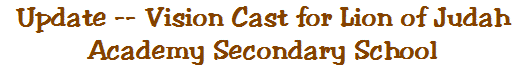 High quality secondary education is an urgent need in Tanzania. That, combined with the fact that our standard seven graduates will have very few opportunities open to them come January, 2006, has led The Lion of Judah Academy board of trustees to cast the vision for The Lion of Judah Academy Secondary School!